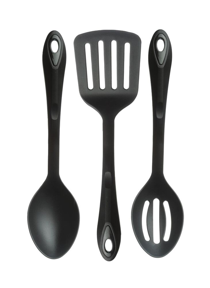 De Coghlan's Cooking set nylon, is een handige 3 delige opschepset, bestaande uit pollepel, spatel en grote lepel. Hittebestendig kunststof (tot 210°C).