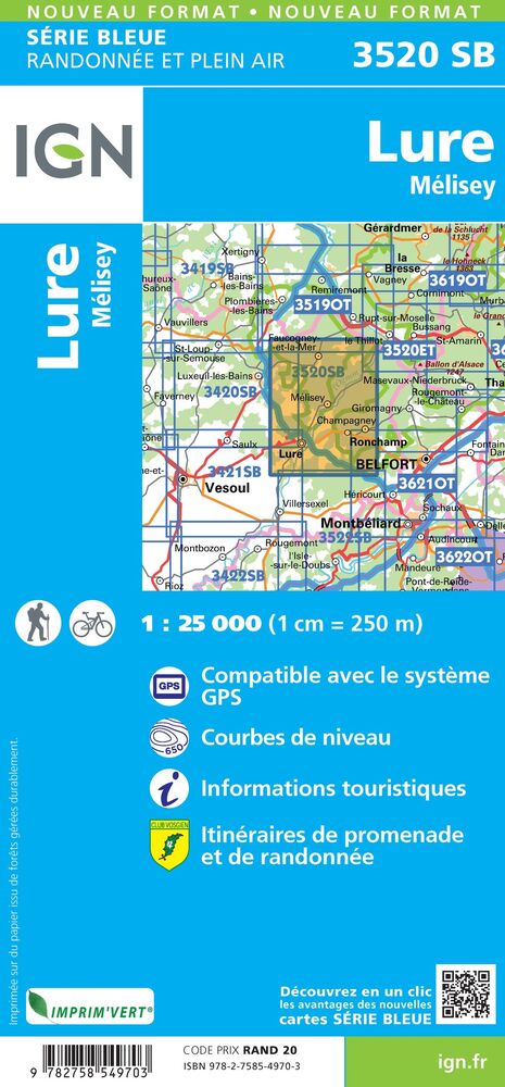 De rest van Frankrijk wordt in kaart gebracht met de "Série Bleu" (oude serie eindigend op O = ouest of E = est) welke geen speciale extra overdruk heeft om de wandelroutes aan te duiden. Op deze kaarten vind je dan ook geen toeristische informatie als campings en hutten; het zijn puur topografische kaarten, maar zoals gezegd bijzonder gedetailleerd. Elke "Série Bleu" kaart bedekt een gebied van ongeveer 20 x 14 km
