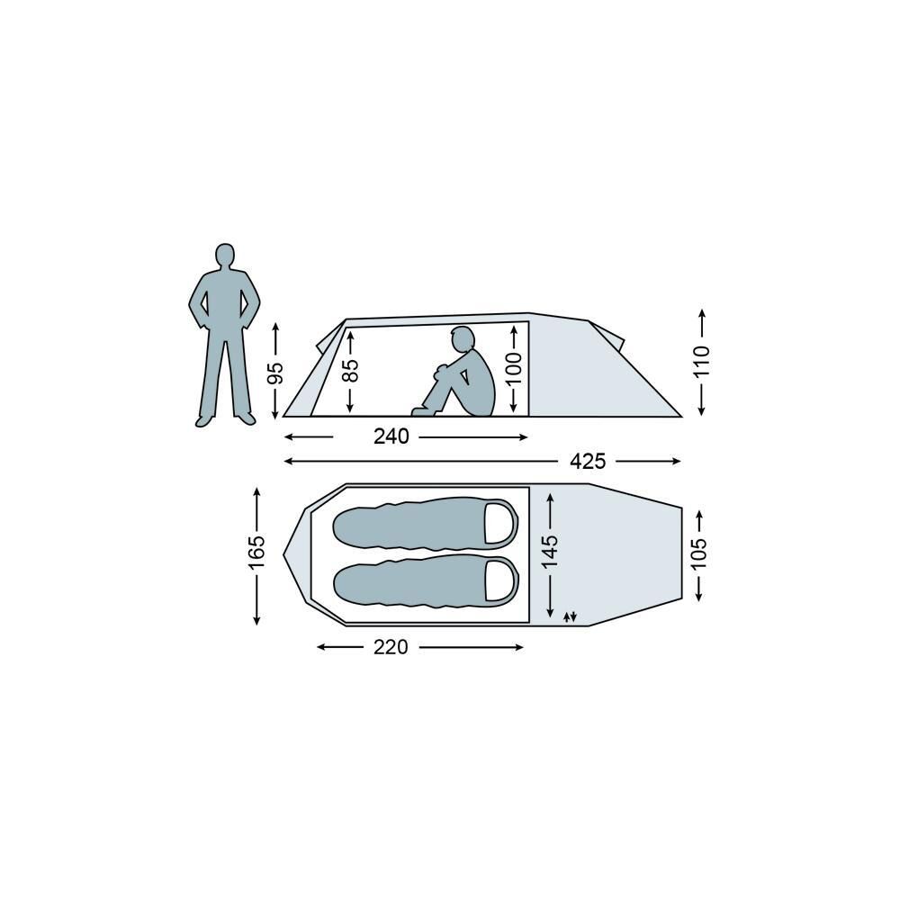 De Oppland 2 SI heeft veel ventilatiemogelijkheden wat zorgt voor een optimaal klimaat binnen in de tent. De aerodynamische tunnelconstructie zorgt voor uitstekende stabiliteit van de tent.